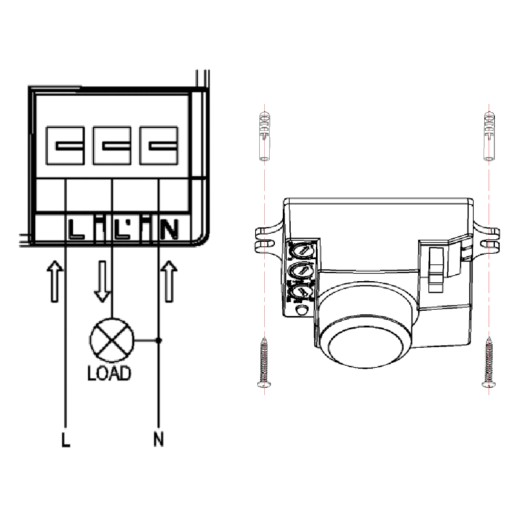 - LUX - Regulacji progu natężenia światła, przy którym czujnik ma załączać oświetlenie LUX: <3-2000 lux
