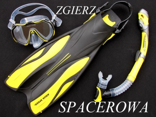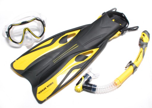 ZESTAW ABC AQUA-SPEED : maska JAVA z zaworkiem nosowym+ "sucha" fajka ELBA+płetwy regulowane SWIFT rozm 38/42 dł płetwy 54 cm