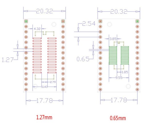 - przejście z w/w na DIL28 z rastrem 2,54mm i szerokość 17,78mm