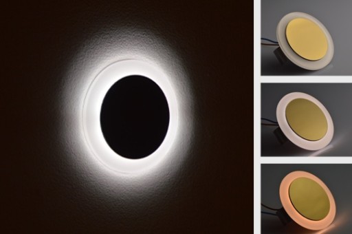 - lampka jest sporo szersza od puszki i dzięki temu zakrywa częste ubytki tynku wokoło otworu