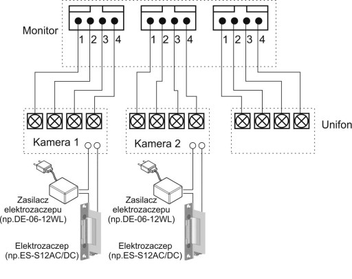 - instalacja czteroprzewodowa + obwód elektrozamka