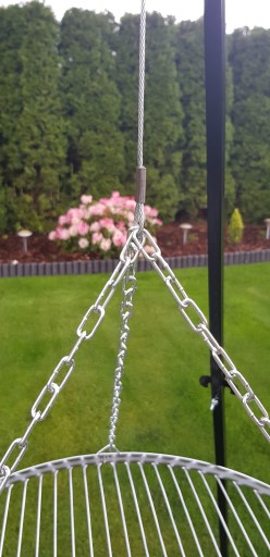 RUSZT POSIADA ŁAŃCUCH Z LINKĄ KTÓRY UMOŻLIWIA REGULOWANIE WYSOKOŚCI OD PALENISKA LUB OGNISKA