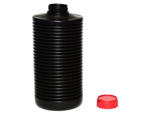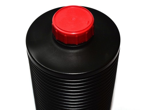Opis towaru: Pojemnik o zmiennej pojemności - harmonijka - zmieniający swoją pojemność przez ściśnięcie lub wydłużenie. W kolorze czarnym z czerwoną nakrętką o średnio dużym otworze do wlewania chemii. Niezbędna przy przechowywaniu wywoływaczy negatywowych wielorazowego użytku, także pozytywowych. W miarę naturalnego zmniejszania się objętości używanego wywoływacza, należy ściskać butelkę tak, aby lustro płynu podeszło pod same brzegi i mocno zakręcić korkiem. Wywoływacze, pomimo substancji antyutleniajacych, najczęściej siarczynu sodu, utleniają się tlenem z powietrza. Przechowywanie ich bez dostępu powietrza wydłuża znacznie okres trwałości i opóźnia starzenie się. Zakres zmiany pojemności od 0,9 do 2 litrów. Do przechowywania pozostałej chemii: utrwalaczy, przerywaczy, zwilżaczy, kąpieli barwiących itp. można użyć normalnych pojemników - powietrze nie ma na nie istotnego lub żadnego wpływu.