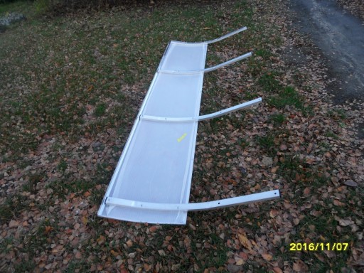 Daszek o wymiarach 3,00 m x 0,50m (część która wystaje poza balkon) + 5cm po łuku + 5 cm pod balkon = 3,00 m x 0,60m = 1,80m2 x 420,00zł/m2 = 756,00zł - część daszku z poliwęglanem