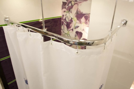 Specjalne zawieszki do zasłony prysznicowej nie kolidują z podwieszeniem drążka. Elementy docina się we własnym zakresie tak aby uzyskać żądany wymiar.