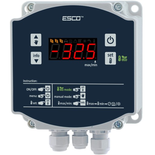 Miernik został zaprojektowany w przemysłowej, hermetycznej obudowie IP65 do pracy w ciężkich warunkach. Jest odporny na zabrudzenia, wysokie stężenie wilgotności i niskie temperatury. Do zestawu dołączone są trzy nierdzewne czujniki temperatury z kablem o długości 2m. Występuje w trzech wersjach zasilania: standard - 230VAC, opcje - 12VAC/DC oraz 24VAC/DC (dopłaty 12V - 12,30 zł , 24V - 36,90 zł)