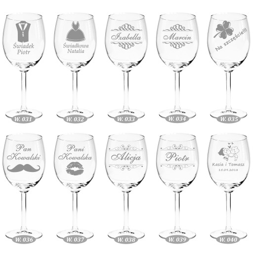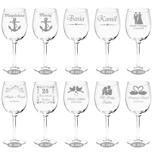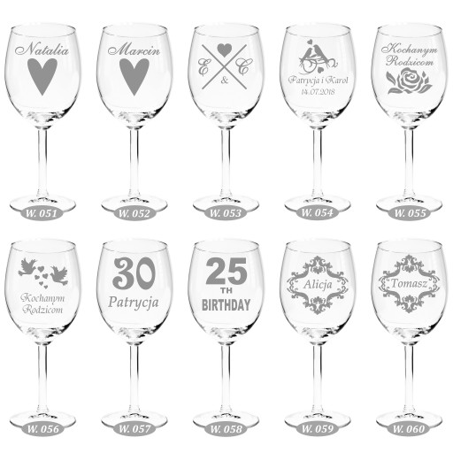 Wszystkie imiona, daty, cyfry itp. przedstawione we wzorach są tylko przykładami, dlatego po zakupie prosimy o dokładną informację o wyborze numeru kieliszków, np.