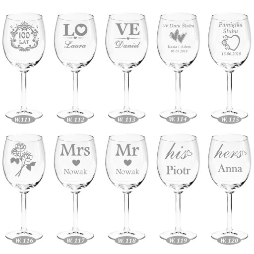Wszystkie imiona, daty, cyfry itp. przedstawione we wzorach są tylko przykładami, dlatego po zakupie prosimy o dokładną informację o wyborze numeru kieliszków, np.