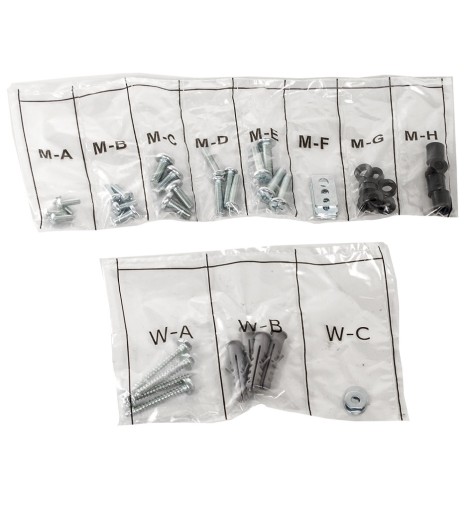 - Elementy montażowe w komplecie (uniwersalne śruby, kołki, podkładki, instrukcja montażu)