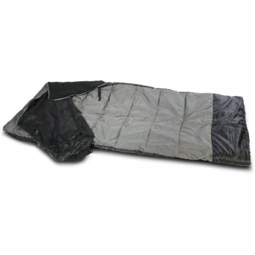 Dość gruby (2 cm) śpiwór, który zapewni odpowiednie ciepło nawet w chłodniejsze jesienne dni. Jest wodoodporny, wystarczająco duży i - co najciekawsze - wyposażony w moskitierę, którą można naciągnąć na twarz dla ochrony przed ugryzieniami, jeśli nocujemy pod gołym niebem.