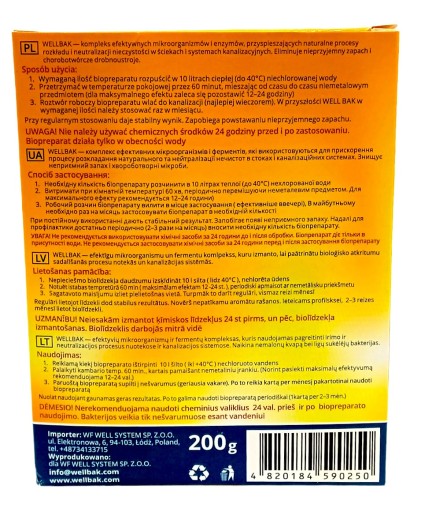 ✅WELLBAK bakterie do szamb i oczyszczalni ekologicznych 200 gram na 10 miesięcy