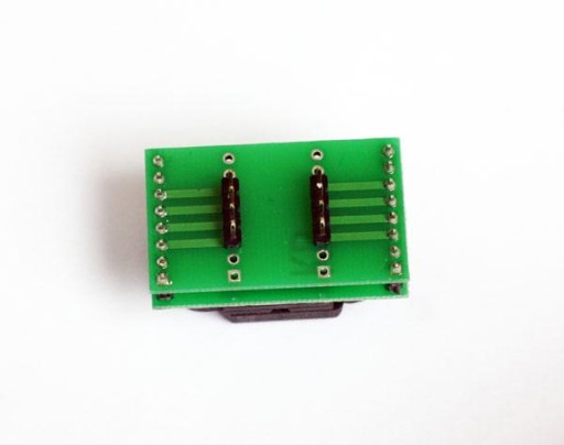 Podstawka jest kompatybilna z układami w obudowach SMD 8-nóżkowych o wymiarach 8x6 mm i rastrze 1,27 mm. Firma podstawki: PLASTRONICS (made in USA)
