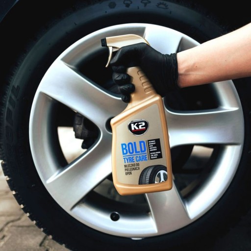 K2 Bold to szybki i łatwy w użyciu środek przeznaczony do nabłyszczania i konserwacji opon. Przywraca oryginalny wygląd, nadaje lśniący połysk i głęboką czerń. Chroni przed promieniami UV, pękaniem oraz matowieniem. Dzięki właściwością hydrofobowym ogranicza osadzanie się zabrudzeń. Może być używany również do nabłyszczania i konserwacji innych powierzchni gumowych oraz plastikowych.