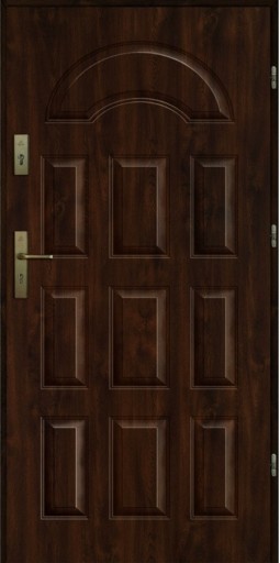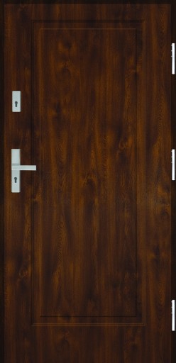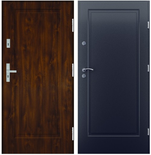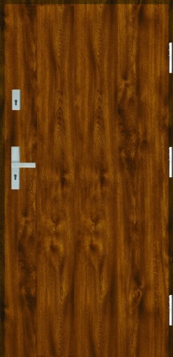 Drzwi wykonane zostały z blachy pokrytej folia dekoracyjną PCV co sprawia, że idealnie pasującą do stolarki okiennej.