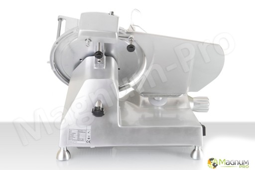 Krajalnica posiada chromowany na twardo nóż o średnicy 25 cm ze szlifem wklęsłym oraz gładkim ostrzem. Nóż ma regulowaną bezstopniową odległość co zapewnia grubość cięcia od 0 do 12 mm.