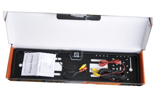 Kamera cofania wbudowana w ramce tablicy rejestracyjnej Przewód AV typu cinch RCA 6m dł Przewód zasilający 101cm długości