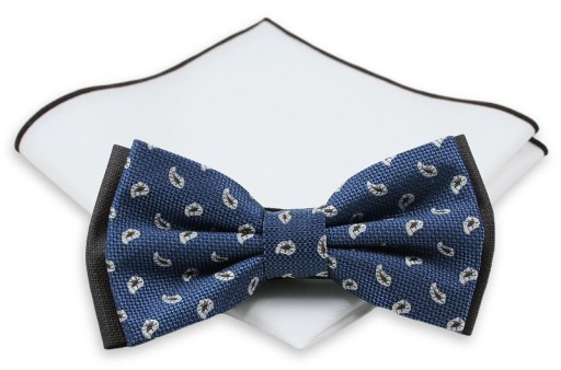 Granatowa Mucha, Wzór Paisley + Biała Poszetka - Chattier, Męska