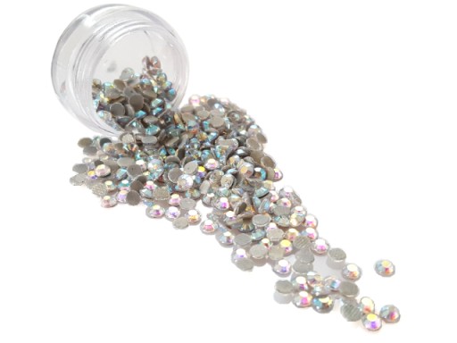 Cyrkonie, posiadają szlif brylantu, mienią się kolorami tęczy. Od spodu pokryte są klejem, który uaktywnia się podczas podgrzewania.