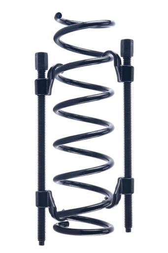 Zestaw ściągaczy 380mm do sprężyn zawieszenia. Dostosowane do wszystkich typów sprężyn w kolumnach McPherson'a oraz sprężyn niezależnych. Ściągacze współpracują z grzechotką 1/2". Drobnozwojowy gwint, ułatwia pracę sprężyny pod obciążeniem. Bezpieczeństwo pracy gwarantują specjalnie wyprofilowane dwuramienne uchwyty.