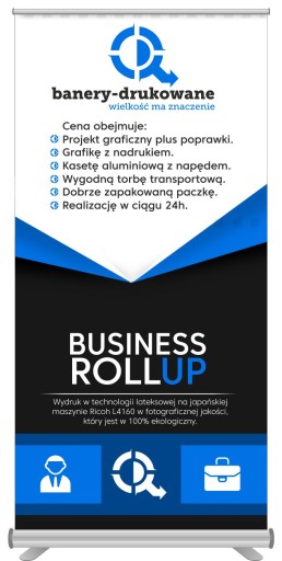 Nasze rollup'y drukujemy na materiale polipropylenowym dedykowanym do rollaup'a, co zapewnia estetyczny wygląd i prezentacje Twojej firmy.