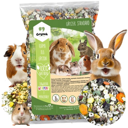 Hodujesz chomika, szynszylę, królika świnkę morską lub koszatniczkę? Szukasz dla nich dobrego i naturalnego pożywienia? Sprawdź naszą mieszankę dla gryzoni. Oferowana przez nas karma to gwarancja najlepszego wyboru. Starannie opracowane receptury, najwyższej jakości składniki, bogactwo walorów odżywczych i smakowych sprawi, że Twoje zwierzątka będą zdrowo i prawidłowo odżywione.