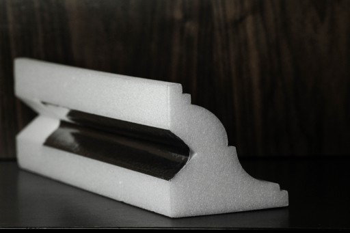 Z racji tego, że jest to biały styrodur w momencie zamontowania listwy LED będzie przebijać światło. Aby uniknąć przebijania światła przez styrodur należy wykleić obydwie ścianki rowka taśmą aluminiową srebrną samoprzylepną!
