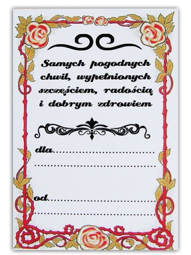 Do pudełka dołączona jest karteczka z życzeniami i miejscem na wpis ""dla kogo"" i ""od kogo"" jest prezent.