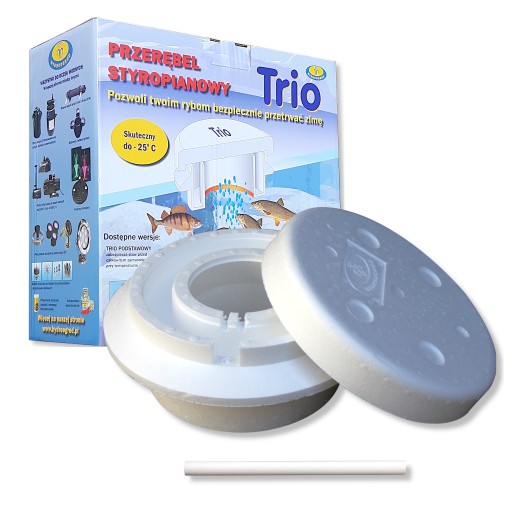 Przerębel “TRIO” zabezpieczy Twój staw przed całkowitym zamarznięciem i uchroni zimujące w nim ryby przed uduszeniem. “TRIO” umożliwia wymianę gazowa w zamarzniętym stawie – toksyczne gazy powstałe podczas rozkładu obumarłych roślin mają możliwość ulotnienia się do atmosfery a tlen nie natrafiając na lód rozpuszcza się w wodzie.