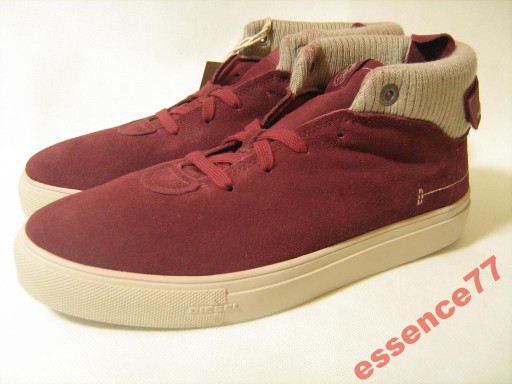 Oryginalne buty męskie DIESEL PROJECTION, ze skóry naturalnej (zamsz), w kolorze ciemnej czerwieni .