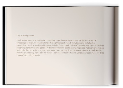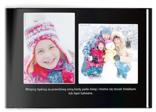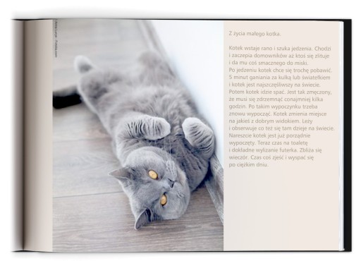 Jeśli mamy do opowiedzenia bardzo dużo, możemy na stronie nie umieszczać zdjęć a jedynie sam tekst. Przykładowo na lewych stronach opowiadamy naszą historię a na prawych wstawiamy zdjęcia.