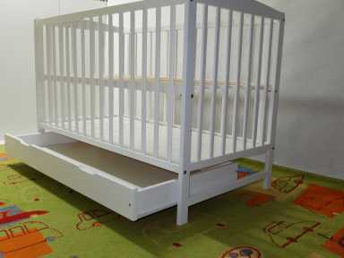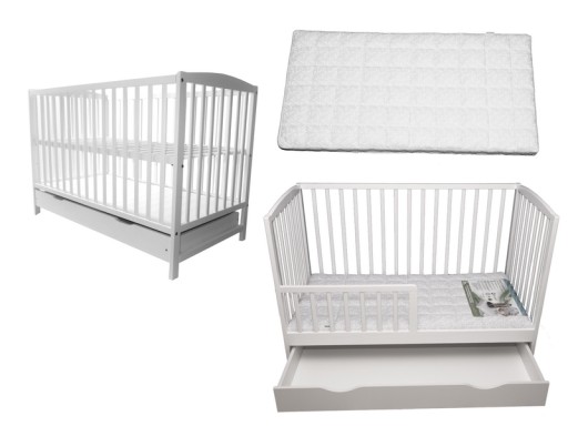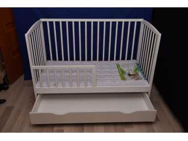 Łóżeczko wykonane jest z drewna sosnowego I gatunku, z możliwością zamiany na tapczanik dla starszego dziecka poprzez wymontowanie boku i zamontowaniu "drabinki" zabezpieczającej (drabinka zabezpieczająca w zestawie), natomiast szuflada z płyty meblowej, pokryte nietoksycznymi farbami i lakierami posiadającymi atest.