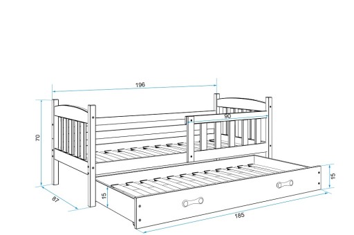 - Materace : wymiar 190x80 1szt + 180x80 1szt +pokrowce( pikowana tkanina hypoalergiczna wykonana z poliestru + włókno klimatyzujące + pianka poliuretanowa + zamek błyskawiczny).