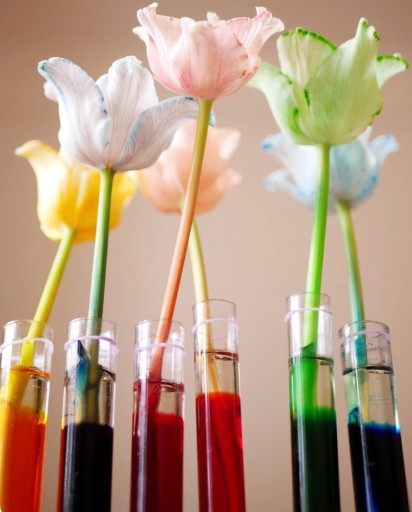 3. CZAS ORAZ ILOŚĆ ZACIĄGANIA BARWNIKA PRZEZ ROŚLINĘ CZYLI EFEKT KOŃCOWY ZALEŻY OD ODMIANY , DŁUGOŚCI ŁODYGI ,STADIUM ROZKWITU KWIATÓW ,TEMPERATURY WODY ,OTOCZENIA ,STĘŻENIA PIGMENTU .