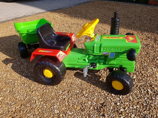 - Posiada tylni napęd łańcuchowy – jest napędzany siłą mięśni malucha, posiada ruchomy układ kierowniczy