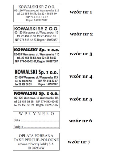 3. Wzór pieczątki (opcjonalnie można podać nr wzoru).