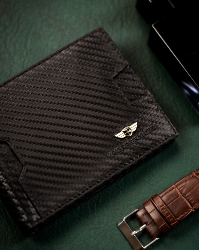 #️⃣ Wykonany został z wysokiej jakości skóry naturalnej powleczonej z zewnątrz warstwą do złudzenia przypominającą włókno węglowe (carbon)