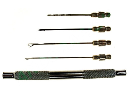 Wysokiej jakości zestaw narzędzi karpiowych służący do przewiercania, przewlekania i montażu kulek proteinowych w metodzie włosowej. Zestaw zawiera wiertło, trzy igły do kulek proteinowych różnej długości oraz rękojeść, do której możemy mocować wiertło i igłę naraz. Igły i wiertło wykonane ze stali nierdzewnej, a uchwyt z duraluminium. Dłuższa igła znajdująca się w zestawie znajdzie zastosowanie w przeszywaniu rosówek w celu ich umieszczenia na żyłce, aby utrudnić rybom ich ściągnięcie z haczyka.