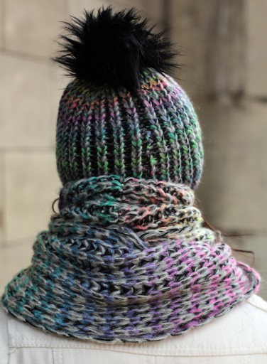 НАБОР! Шапка с помпоном + шарф MULTICOLOR K2