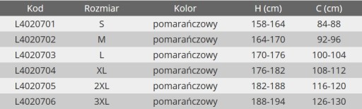 Tabela z rozmiarami dla lepszego doboru odzieży