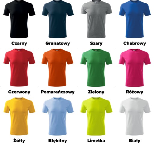 Rzeczywiste kolory nadruków i koszulek mogą nieznacznie różnić się od przedstawionych na zdjęciach. Jest to zależne od indywidualnych ustawień monitora.