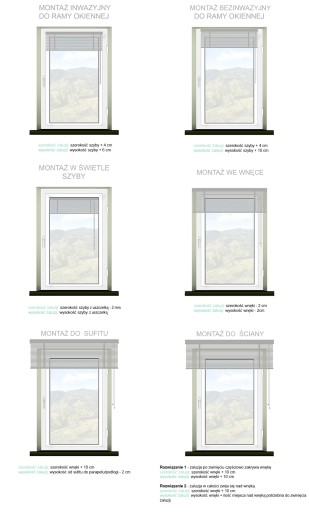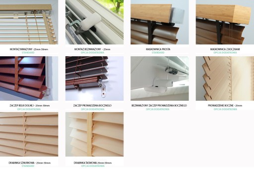 - prowadzenie boczne - linki stalowe prowadzone po obu stronach w celu przytrzymania żaluzji na dowolnej wysokości montaż inwazyjny lub bezinwazyjny