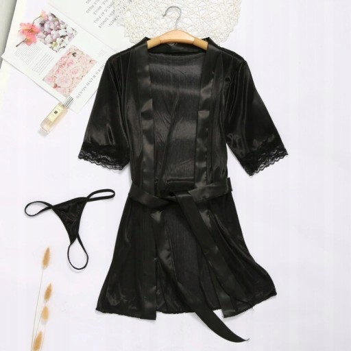 ❤️NIEZWYKLE ZMYSŁOWY SZLAFROCZEK Z KORONKOWYMI ZAKOŃCZENIAMI RĘKAWÓW, ORAZ TASIEMKĄ DO PRZEWIĄZYWANIA❤️