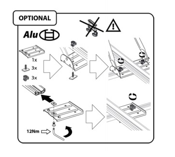 Adaptery, pozwalające zamontować uchwyt Taurus BikeUp na belkach aluminiowych ( rowek "T" )