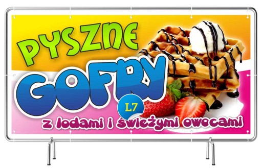 Baner reklamowy 2m x 1m gotowy do powieszenia. Projekt Gratis! Lody Gofry Desery