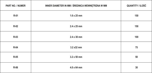 Zestaw zawleczek prostych - przetyczek. Zawiera 555 zawleczek o różnych rozmiarach. Całość umieszczono w wygodnym opakowaniu typu "sortownik".
