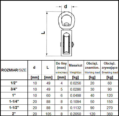 BLOCZEK DO LINY POJEDYNCZY OBROTOWY 2 NIKLOWANY