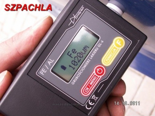 Grubościomierz lakieru GL-6 służy do pomiaru grubości warstwy lakieru nałożonej na blachę samochodową stalową, stalową ocynkowaną lub aluminiową. Ponadto umożliwia przystosowanie do innych metali. Pomiar przedstawiany jest na dużym, czytelnym wyświetlaczu LCD 2 linie po 8 znaków. Maksymalna rozdzielczość pomiaru wynosi 1µm a zakres pomiarowy od 0µm do 1100µm. Wbudowana pamięć 100 pomiarów pozwala na swobodne przeglądanie pomiarów po wykonanych czynnościach pomiarowych. Pamięć nie ulega skasowaniu po wyłączeniu urządzenia bądź wyciągnięciu baterii. Zastosowano przydatną funkcję pomiaru względem wybranego punktu odniesienia (patrz opis poniżej specyfikacji). Miernik posiada wskaźnik stanu baterii. Urządzenie ma wbudowane podświetlanie wyświetlacza, dzięki temu łatwiejsze jest dokonanie pomiaru w ciemniejszych pomieszczeniach (np. w garażu).