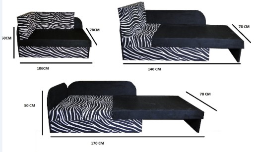 Tapczanik posiada pojemnik na pościel. Górna część tapczaniku jest wysuwana.