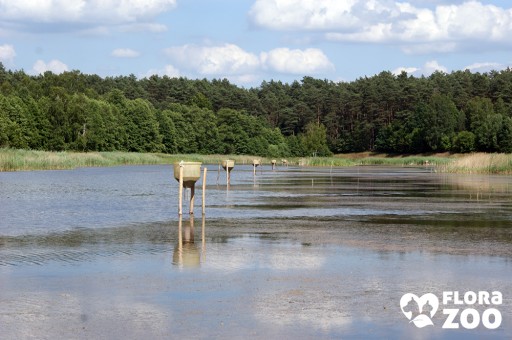 Dzięki zastosowaniu mocnych kątowników istnieje możliwość montażu karmnika na brzegu oczka np. do pomostu lub bezpośrednio nad lustrem wody stosując odpowiednie pale mocujące konstrukcje w dnie zbiornika