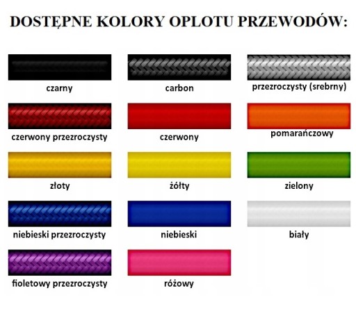 - wybrany kolor przewodów oraz kolor końcówek (proszę wybrać jeden, ze wskazanych poniżej)